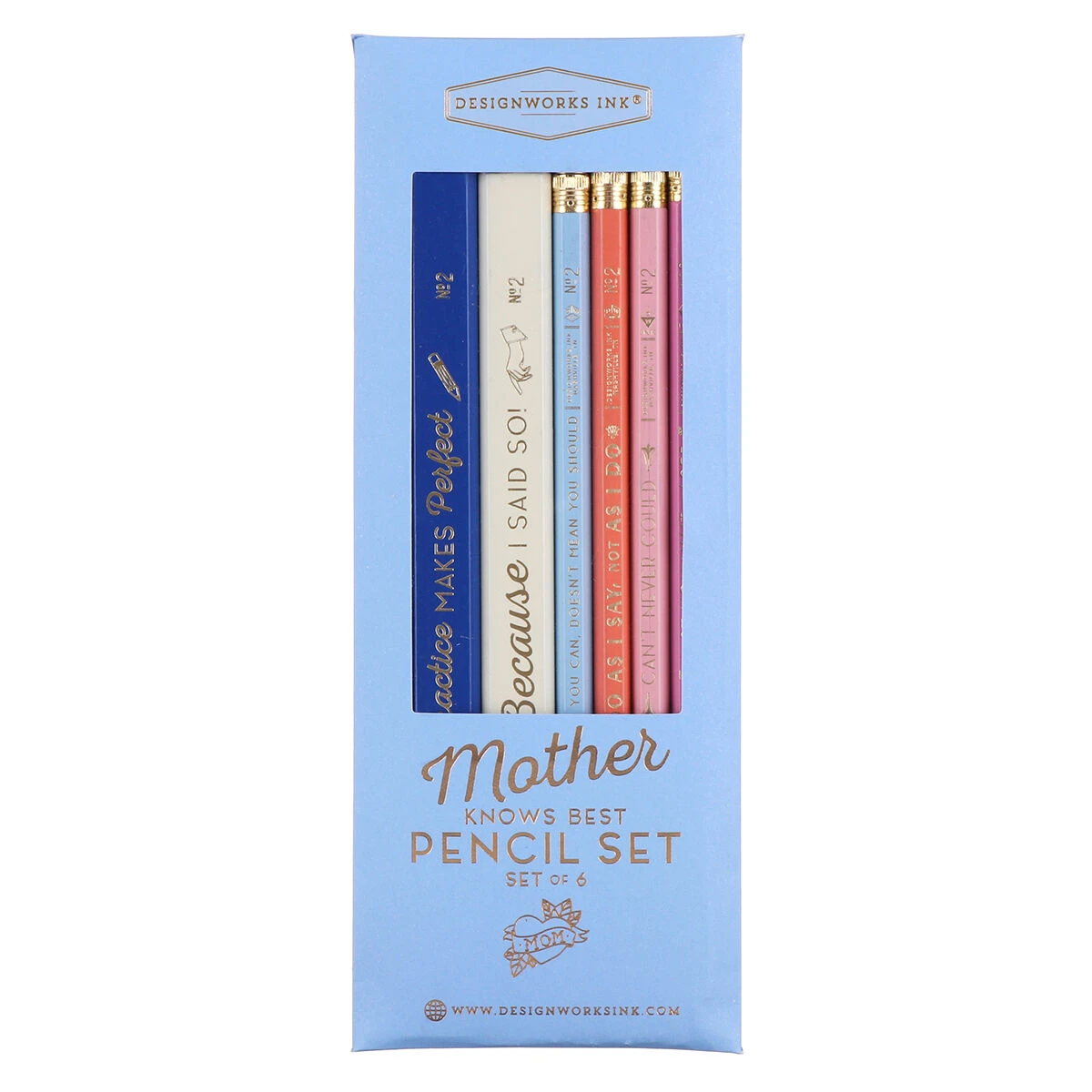 This fun set of āMother Knows Bestā pencils from Design Works Ink are perfect for completing your stationery set.