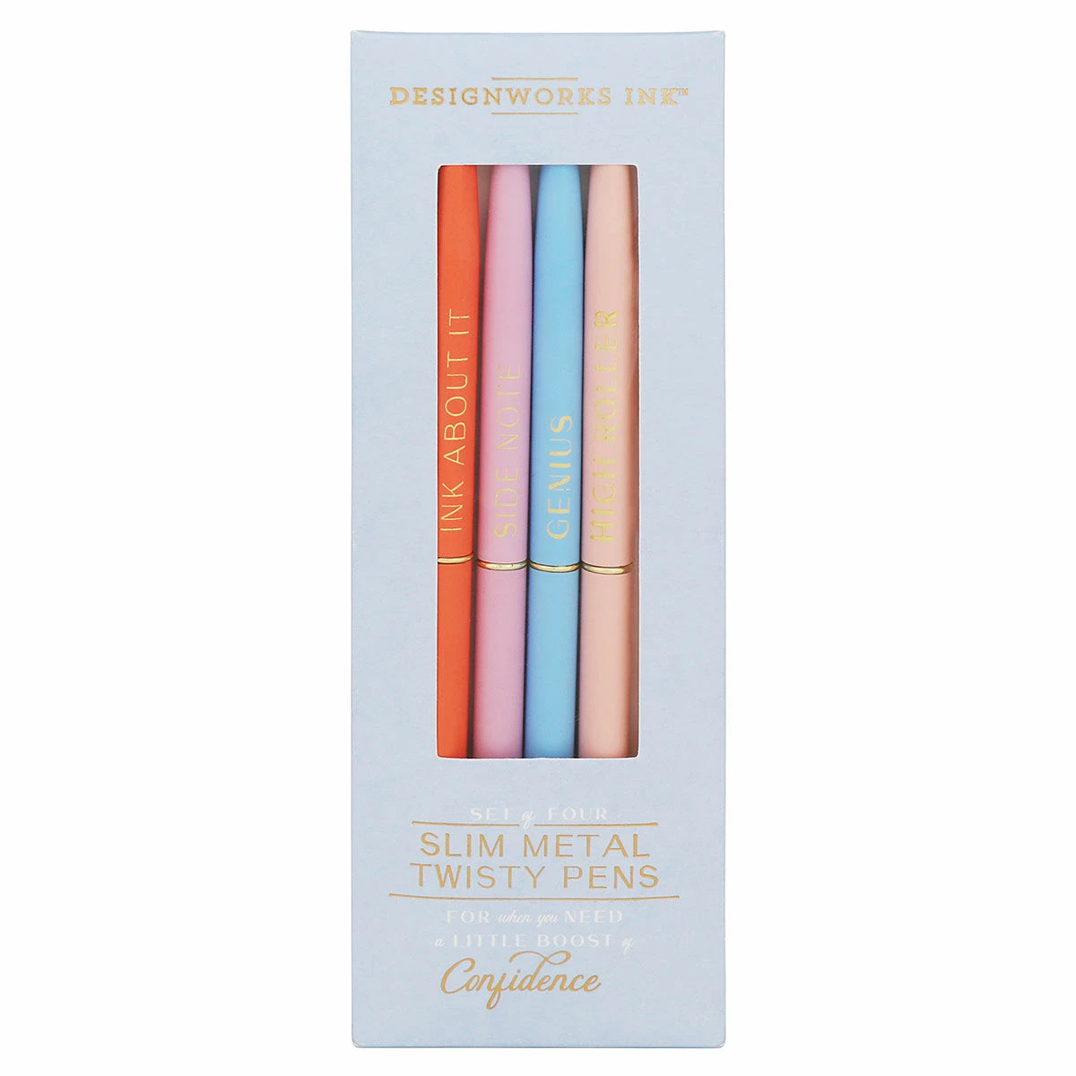Designworks Ink Set Of 4 Confidence Twisty Slim Metal Pens