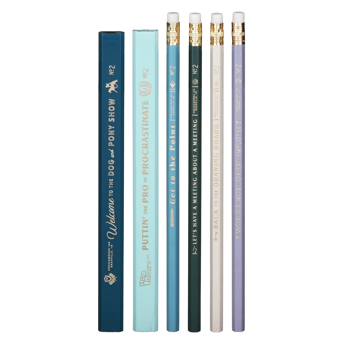 This fun set of ‘Workplace Shenanigans’ pencils from Design Works Ink are perfect for completing your stationery set.