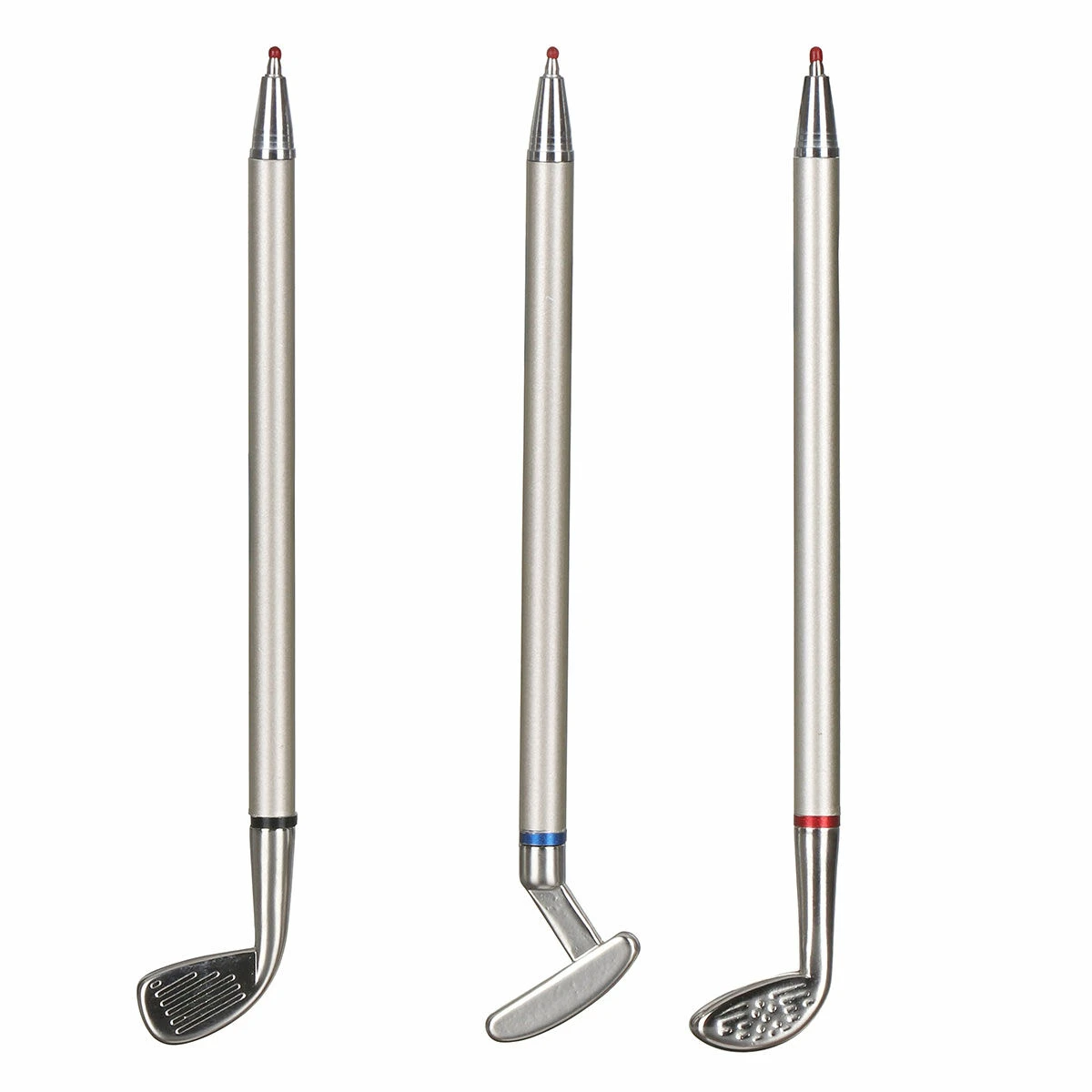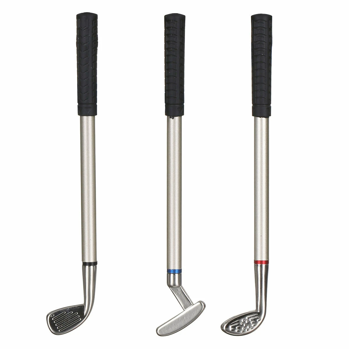 This set of three pens features miniature golf clubs which are actually ballpoint pens with black, blue and red ink. Simply remove the rubber handle to reveal the pen and get writing!