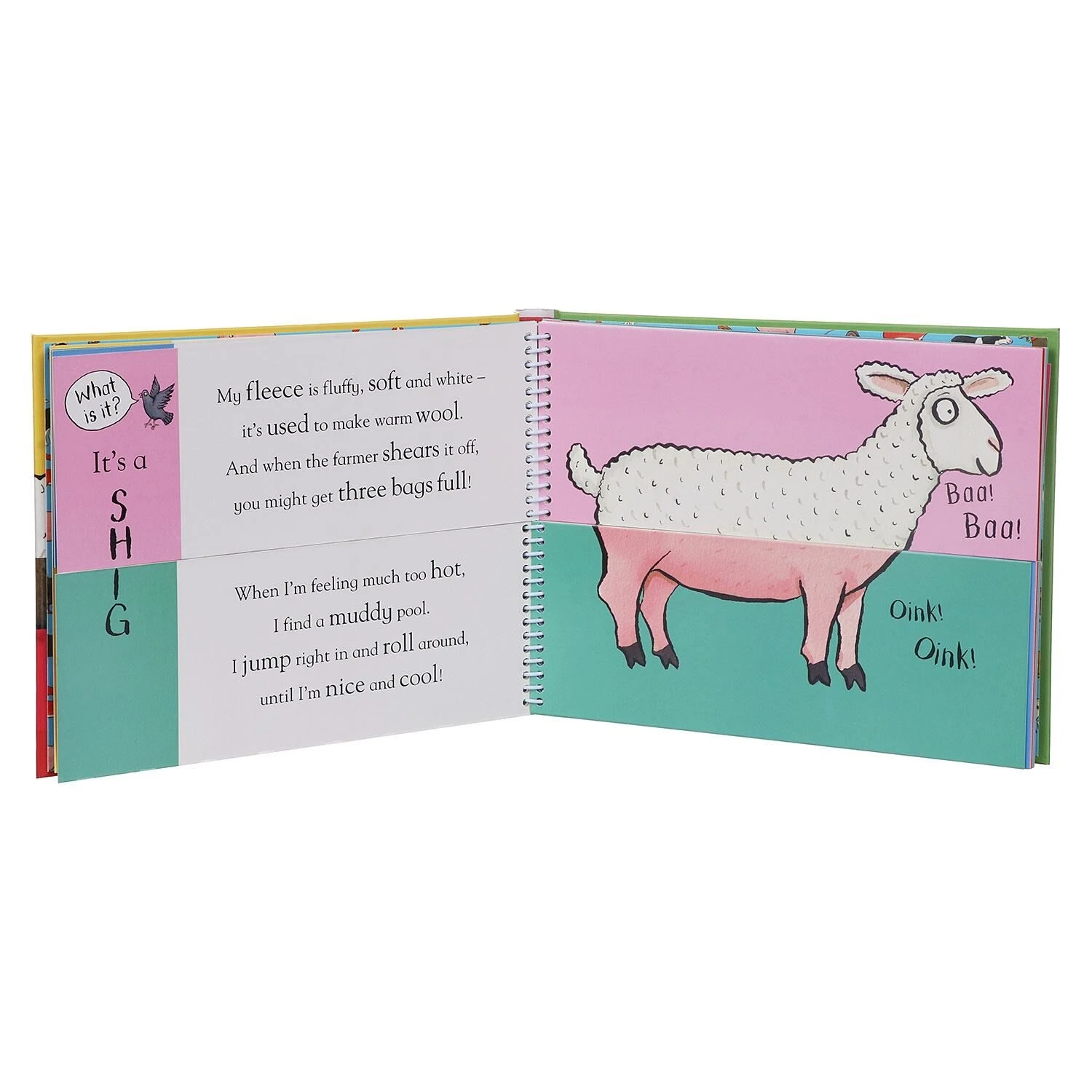 This large children’s book is based on all the animals they’ll find on the farm. The wonderful book allows you to mix and match a variety of farm animals.