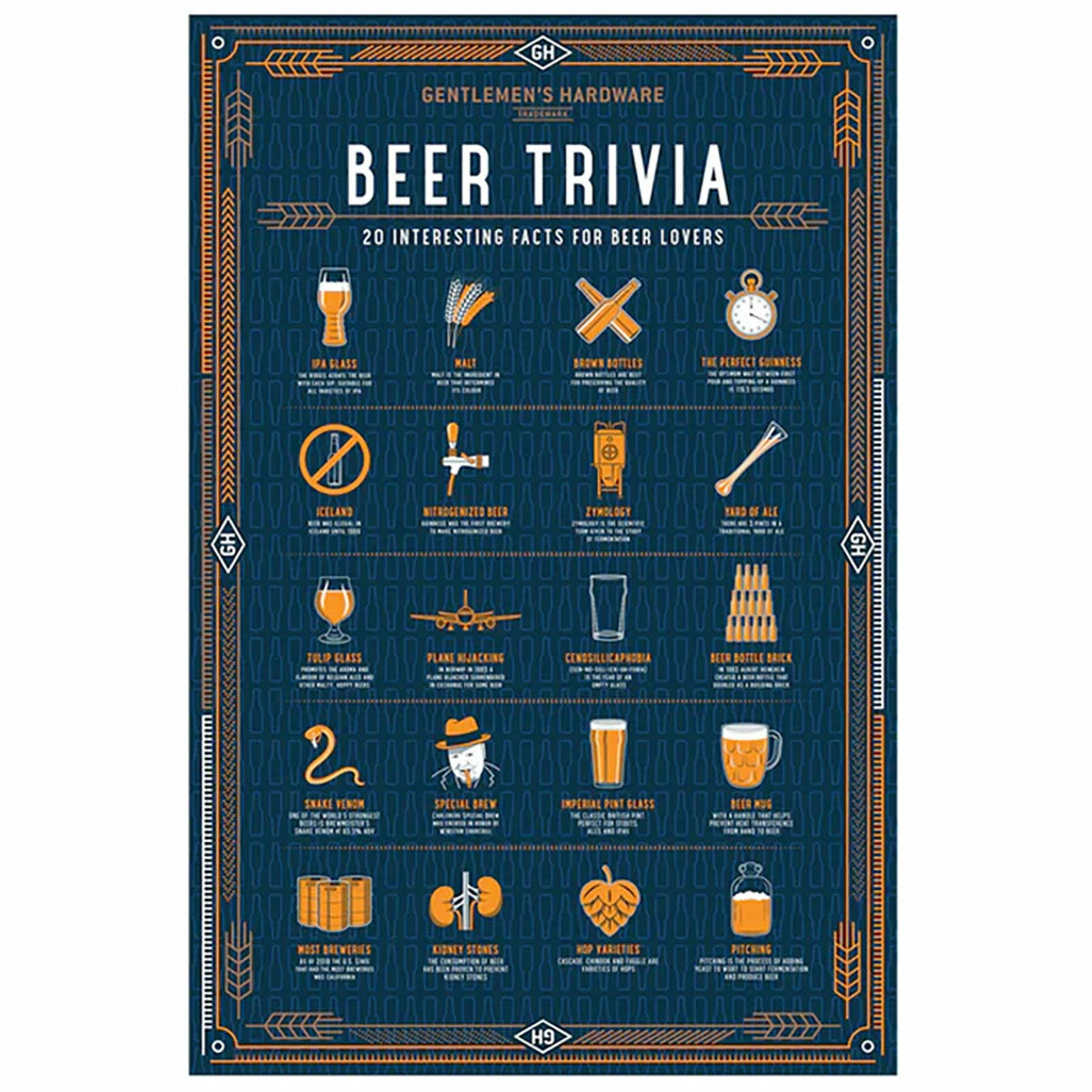 Challenge yourself and test your puzzle solving skills with this incredible Beer Trivia puzzle from Gentlemen’s Hardware. Frame it and hang-up it, this puzzle can be used an informative décor piece for your man cave