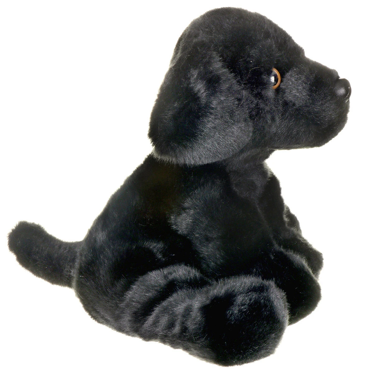 Made from a soft plush material featuring a silky black fur coat, this adorable canine companion is perfect for snuggling up with.