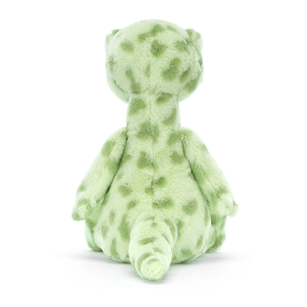 This lovable lizard is coloured green and stands out beautifully with his terrific tail, large hands and feet that are great for crawling, with his beady black eyes and cheeky smiling face. Mottled patches of a darker green give his soft fur a textured effect.