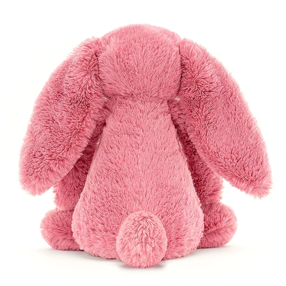 She has beautiful cerise pink fur, a cute pink nose and an even cuter and fluffier bunny tail. This bashful rabbit also has beans in her bottom so that she can sit up on her own when you’re at school, awaiting your return and more playtime.