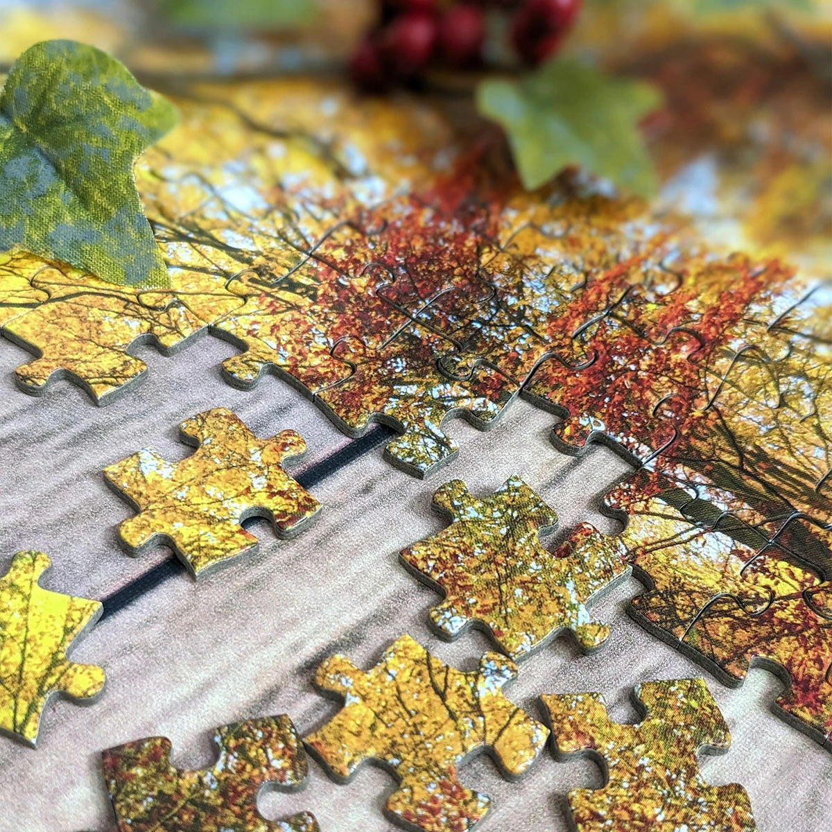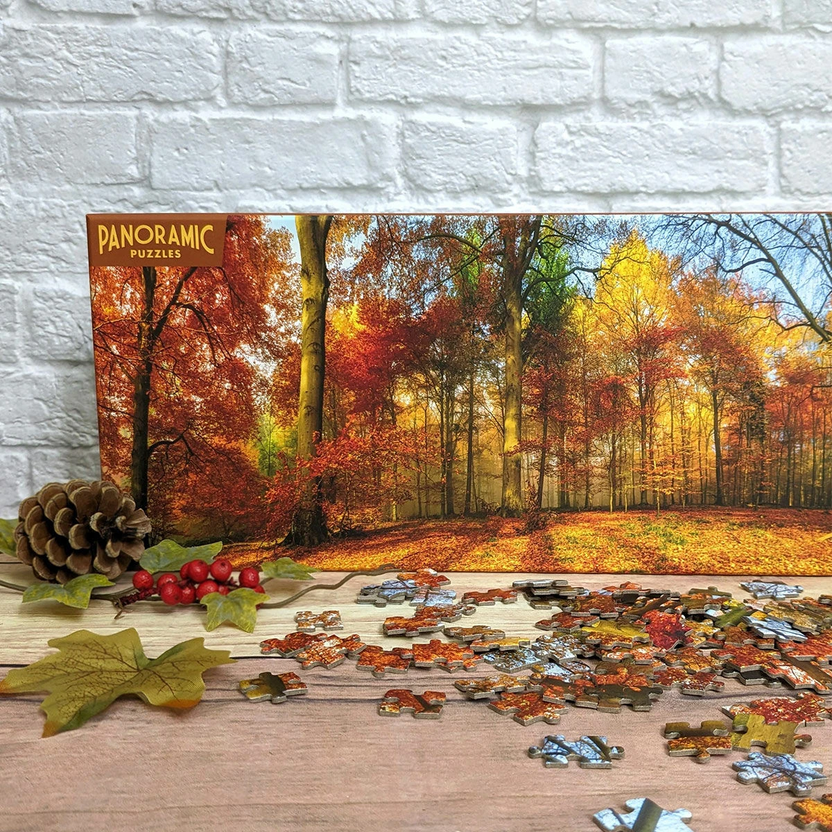 Create a calming autumnal landscape with this puzzle. The palette of wonderful reds, oranges of yellows of autumn trees looks incredible, contrasting to the hint of blue from the sky. The leaves have fallen from the trees and covered the forest floor. This 1000-piece puzzle is perfect for anyone who enjoys problem solving.