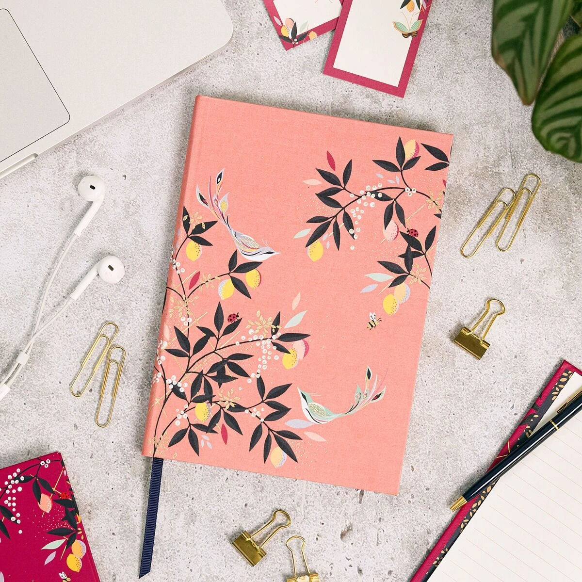 Add a pop of colour to your stationery collection with this stunning fabric journal featuring the gorgeous Orchard Birds design from Sara Miller. The stunning, coral pink colour and gorgeous motif are sure to put a smile on your face each time you jot down your notes and ideas.