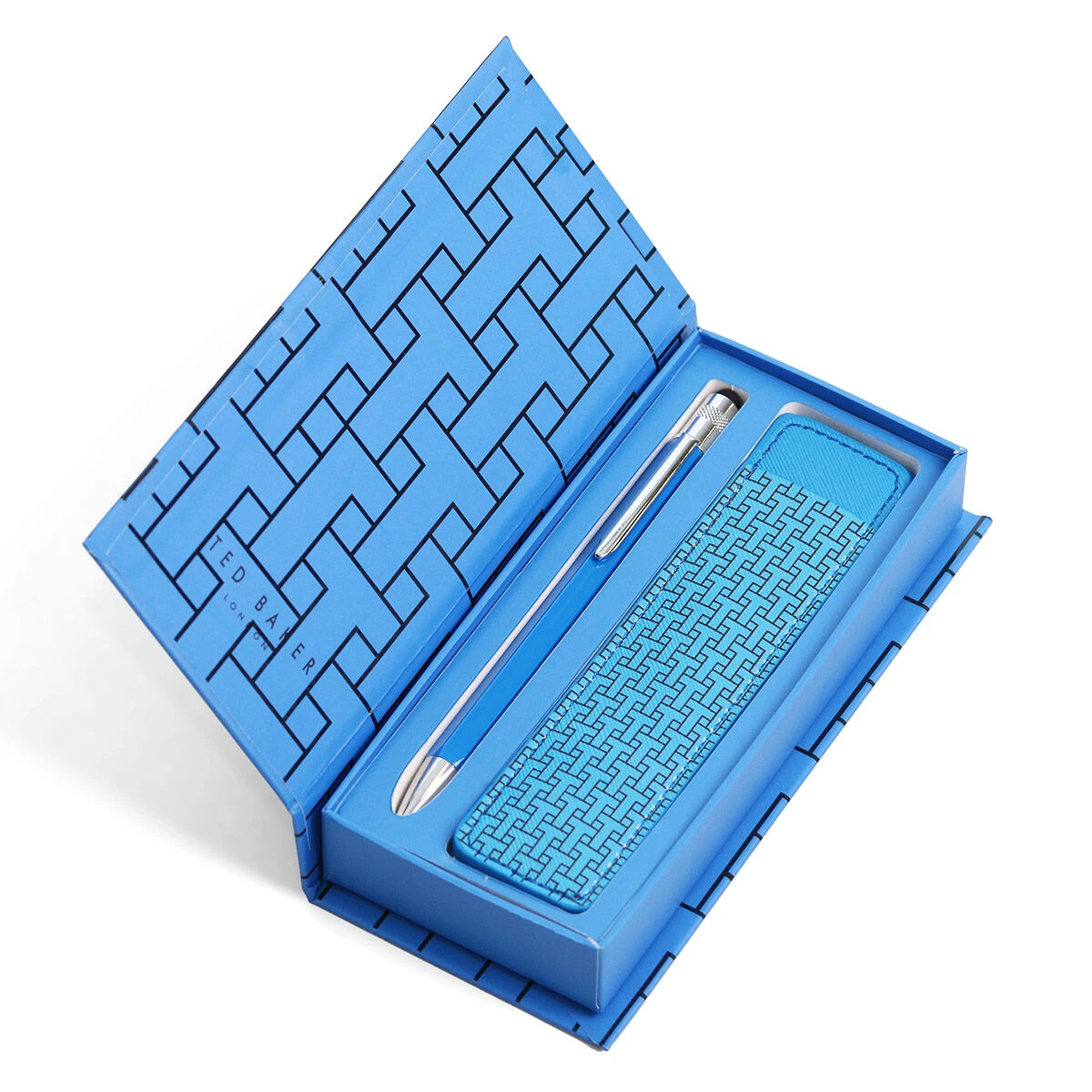 Add a touch of class to your pencil case with this tasteful PENELL T pen with pouch from Ted Baker. Designed in blue with a silver clip, this pen is the perfect way to satisfy your creative urges with the stylish calligraphy that it encourages. This makes it brilliant for all your creative writing, as well as signing for those parcels, or writing your next story!