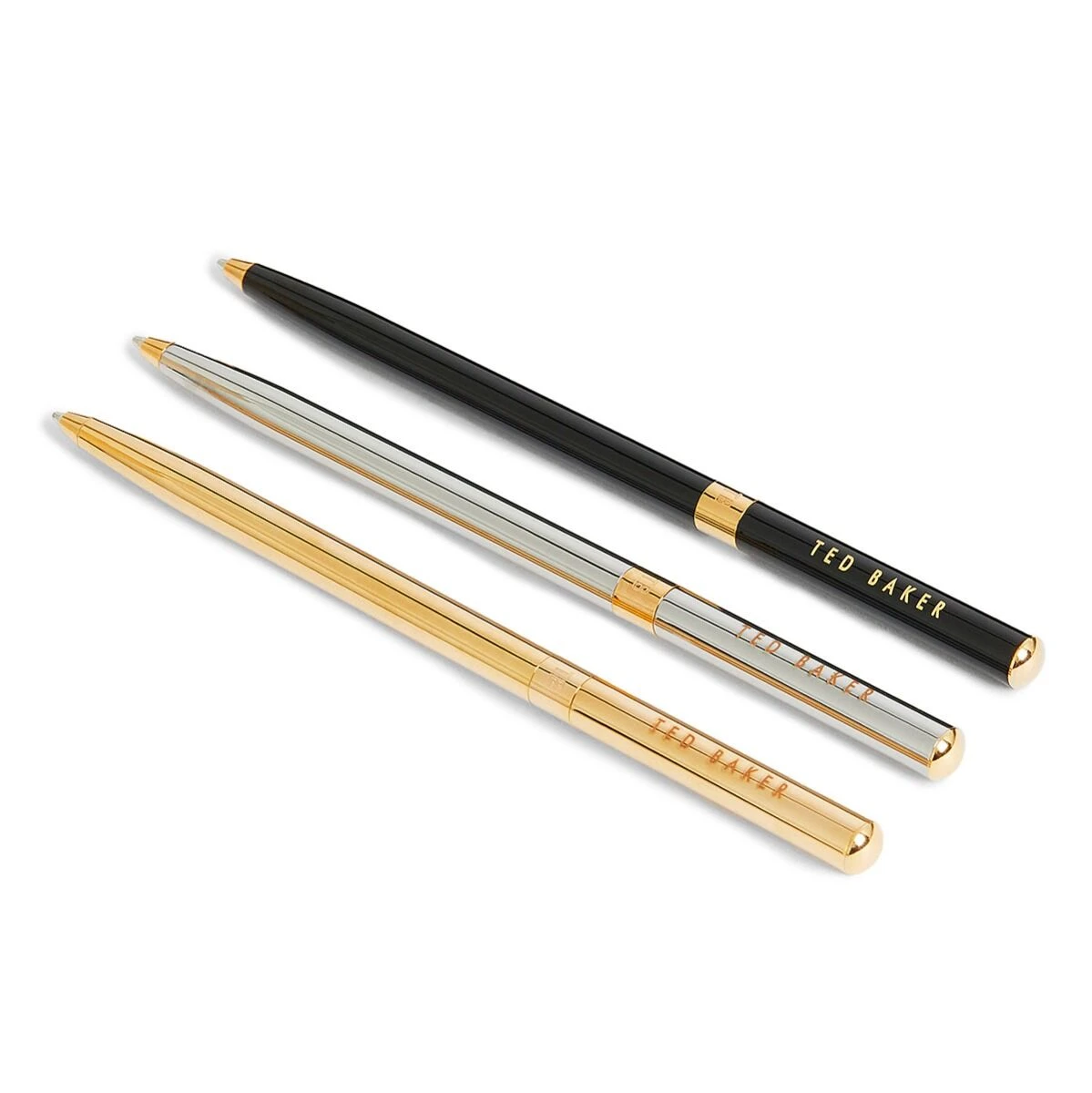 Add a touch of luxury to your pencil case with this gorgeous set of pens from Ted Baker. Writing with black ink through a ballpoint nib, these pens allow you to doodle your heart out or simply spruce up your desk. You get three pens, one silver, one black and one gold, each embossed with the Ted Baker logo.