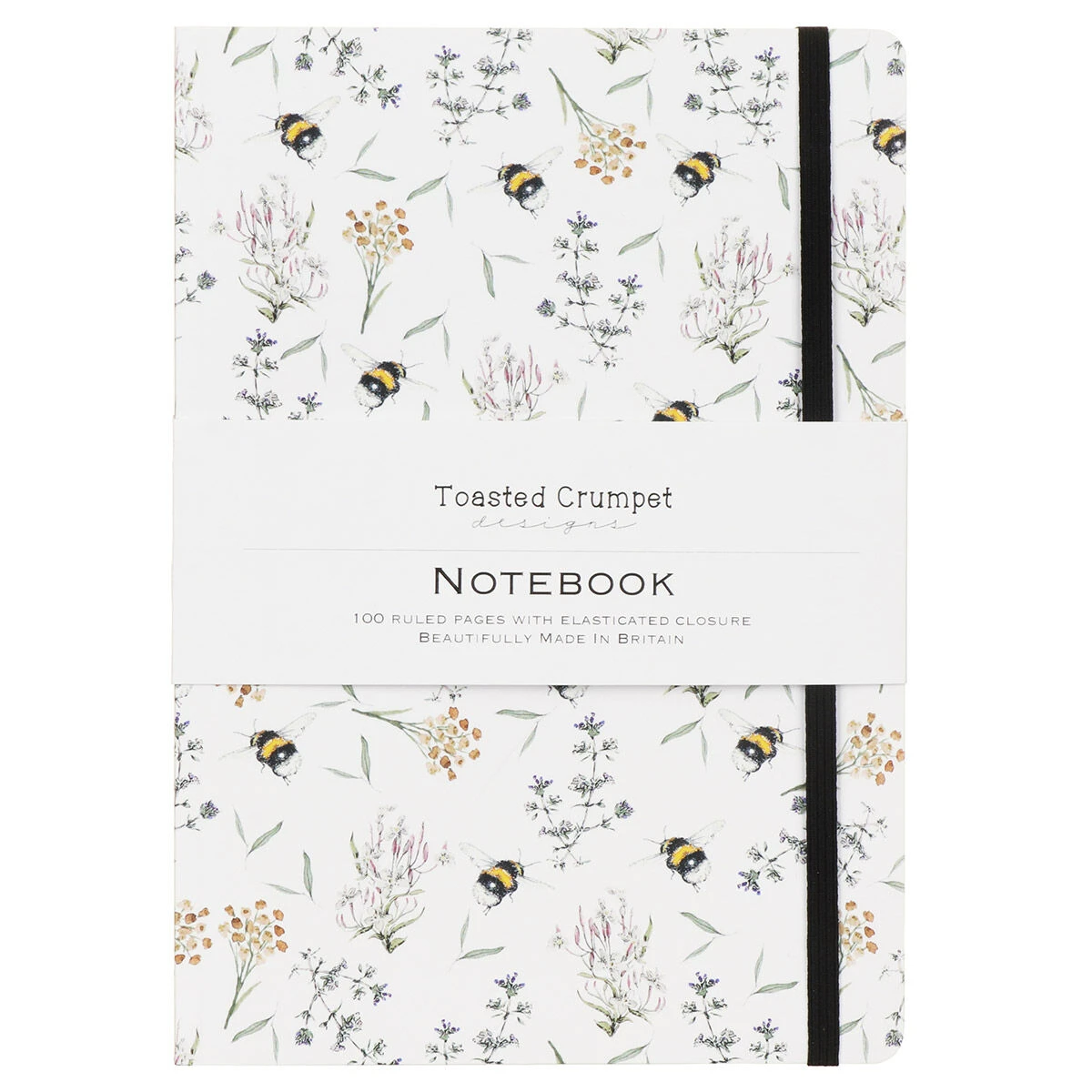 Toasted Crumpet ‘Bees & Honeysuckle’ White A5 Lined Notebook