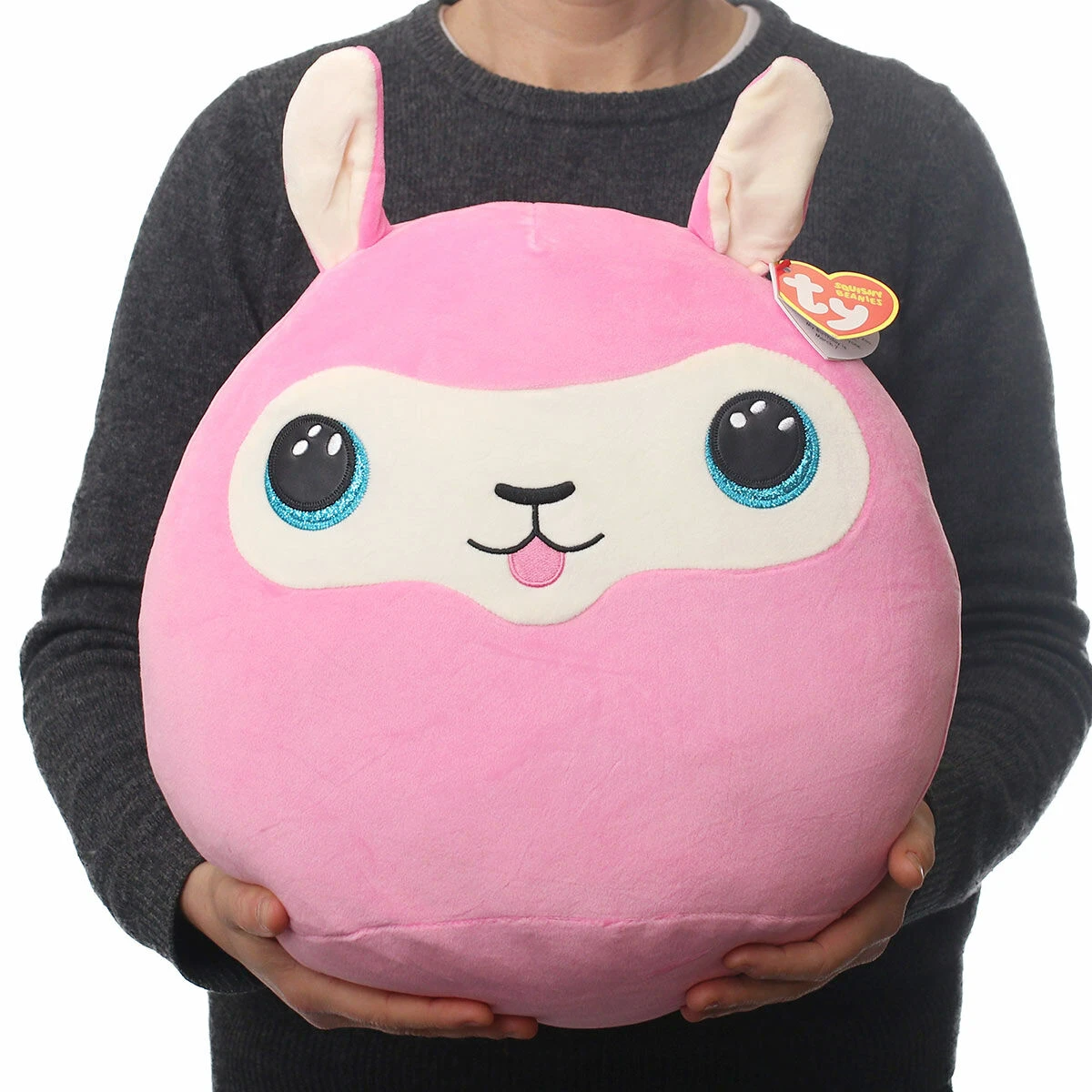 This super squishy Squishaboo is named Lana the Llama! Lana has a cuddly cushioned round body featuring soft pink fur with a cream face and tall ears! Snuggle up together on a rainy day or take this cuddly pal out for a play!
