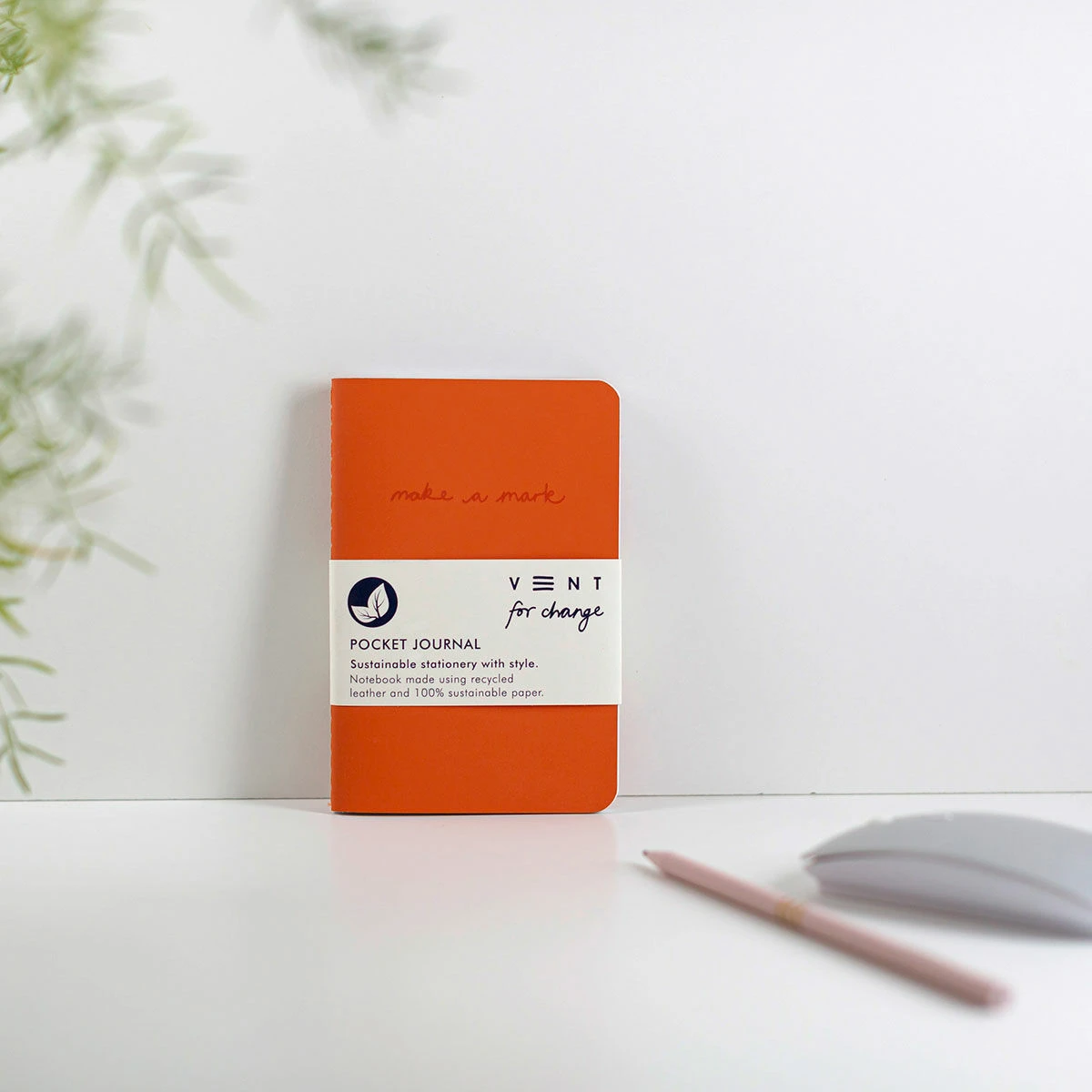 Made from recycled leather and 100% sustainable paper, this flexible recycled leather pocket journal is perfect for any stationery lover who cares about making a positive impact on the environment.