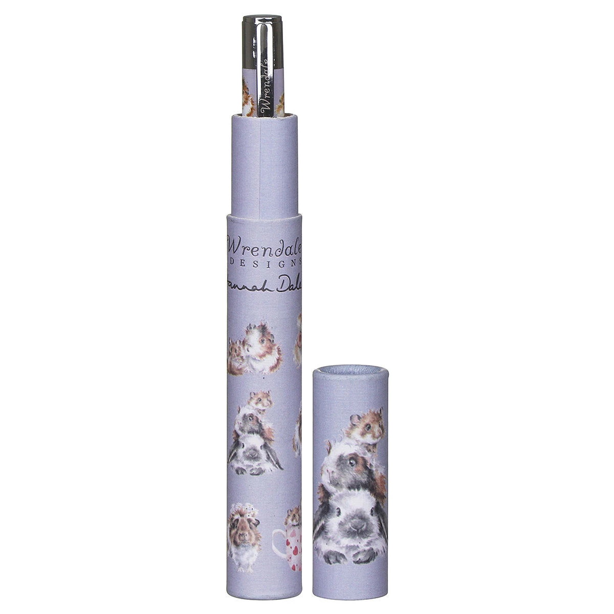 It is presented in a gift box tube decorated with matching illustrations, all of which are painted in subtle tones, in the soft watercolour style that is associated with Wrendale designer Hannah Dale. The pen opens and closes by twisting the base, and is refillable with standard cartridges. It makes a wonderful gift for animal lovers, for a birthday, Christmas, or Mother’s Day.